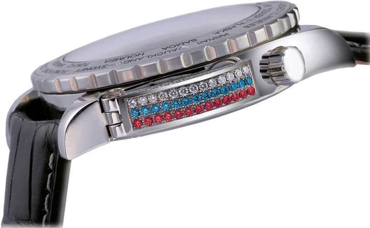 The lever may be set with diamonds, rubies, sapphires or emeralds arranged in the design of your national flag. Or have our master jeweler gem-set your watch with the stones and design of your choice. Wear VOGARD on your wrist and show your true colors – whereever you go in the world.
