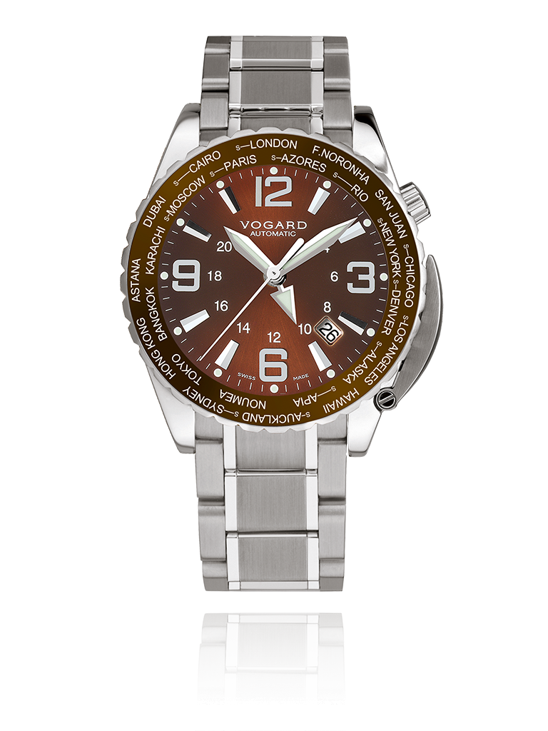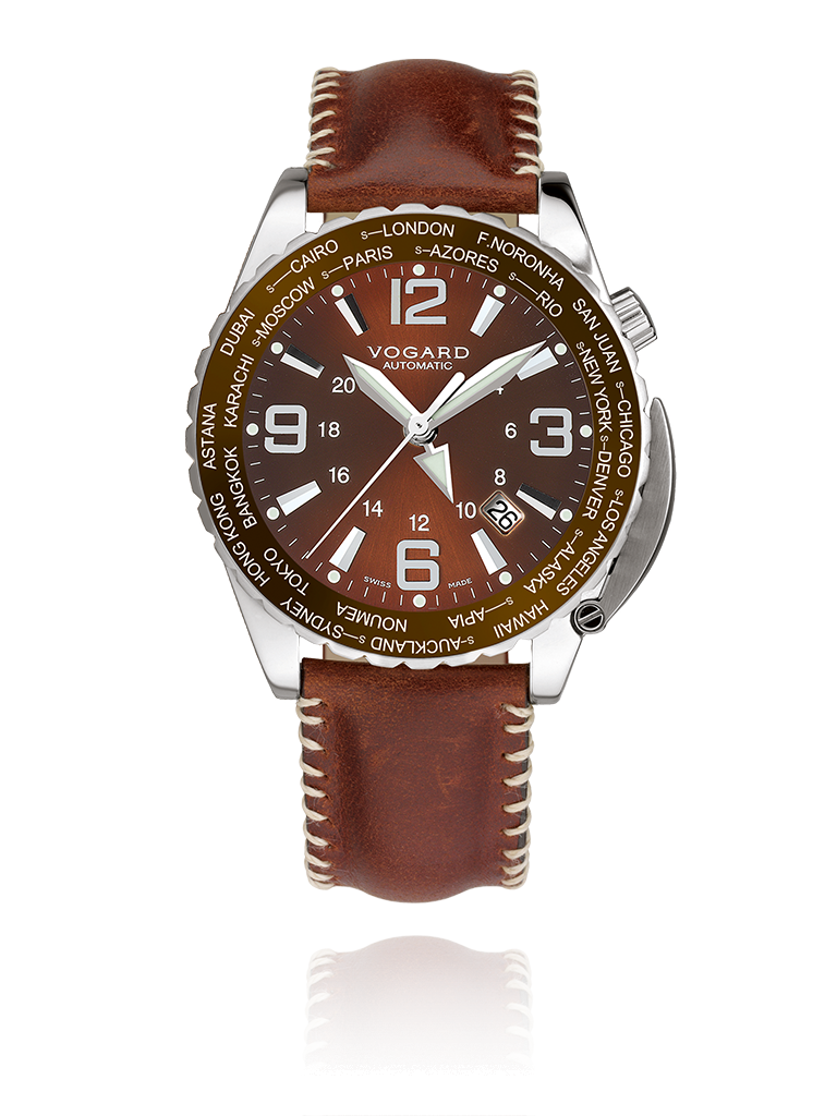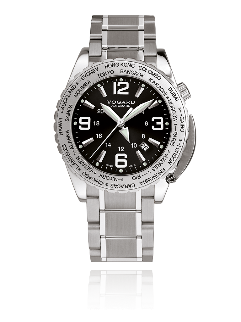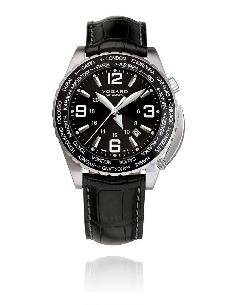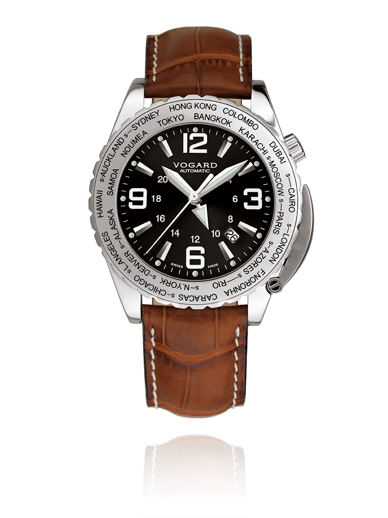 Businessmen are decision makers, internationally connected and permanently on the move to new ventures. In this fast paced world, knowing just when to make that important call, can be of key importance. Here is your business partner, with a bezel featuring 24 major cities to guide you on your way. All destinations subject to Daylight Savings Time (summer time) have a special marking and adjustment feature, so that you will always be punctual. And the 24-hour hand will keep track of day and night for you, even when the curtains are closed.